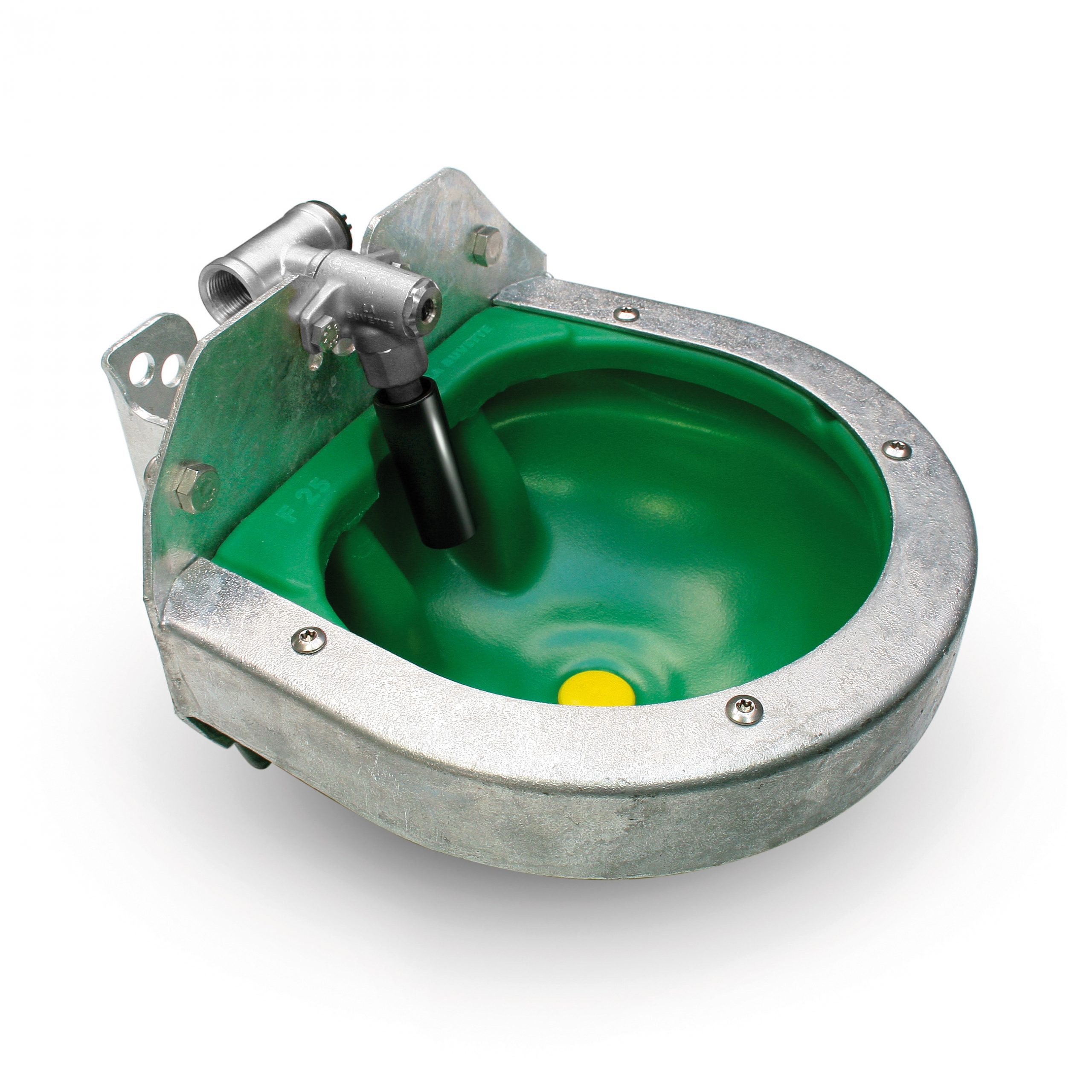 Non-spill iš aukšto tankio polietileno (HDPE) su visą girdyklą apjuosiančia cinkuoto metalo krašto apsauga.