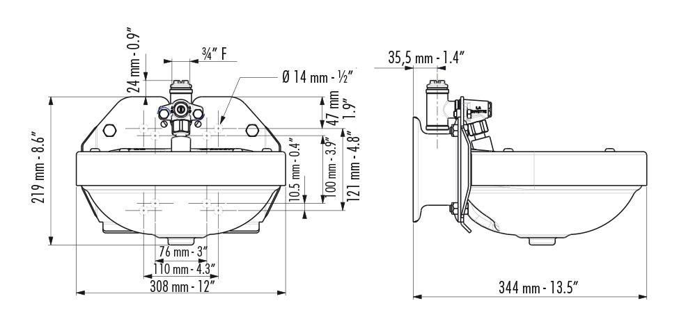 - Drenažinis kamštis ∅30 mm, lengvai be įrankių ištraukiamas.