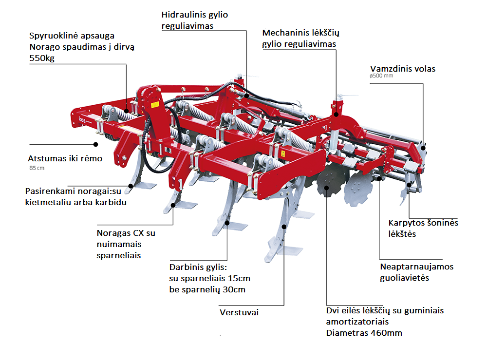 - Darbinis rekomenduojamas gylis 15 cm su sparneliais (be sparnelių darbinis gylis iki 30 cm);